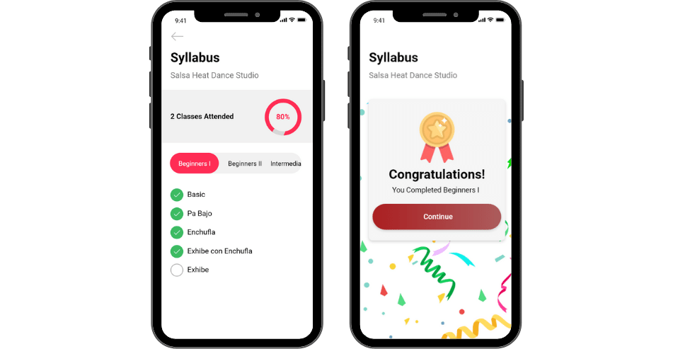 Check off the dance moves you learn from the syllabus in the app to see your progress over time.